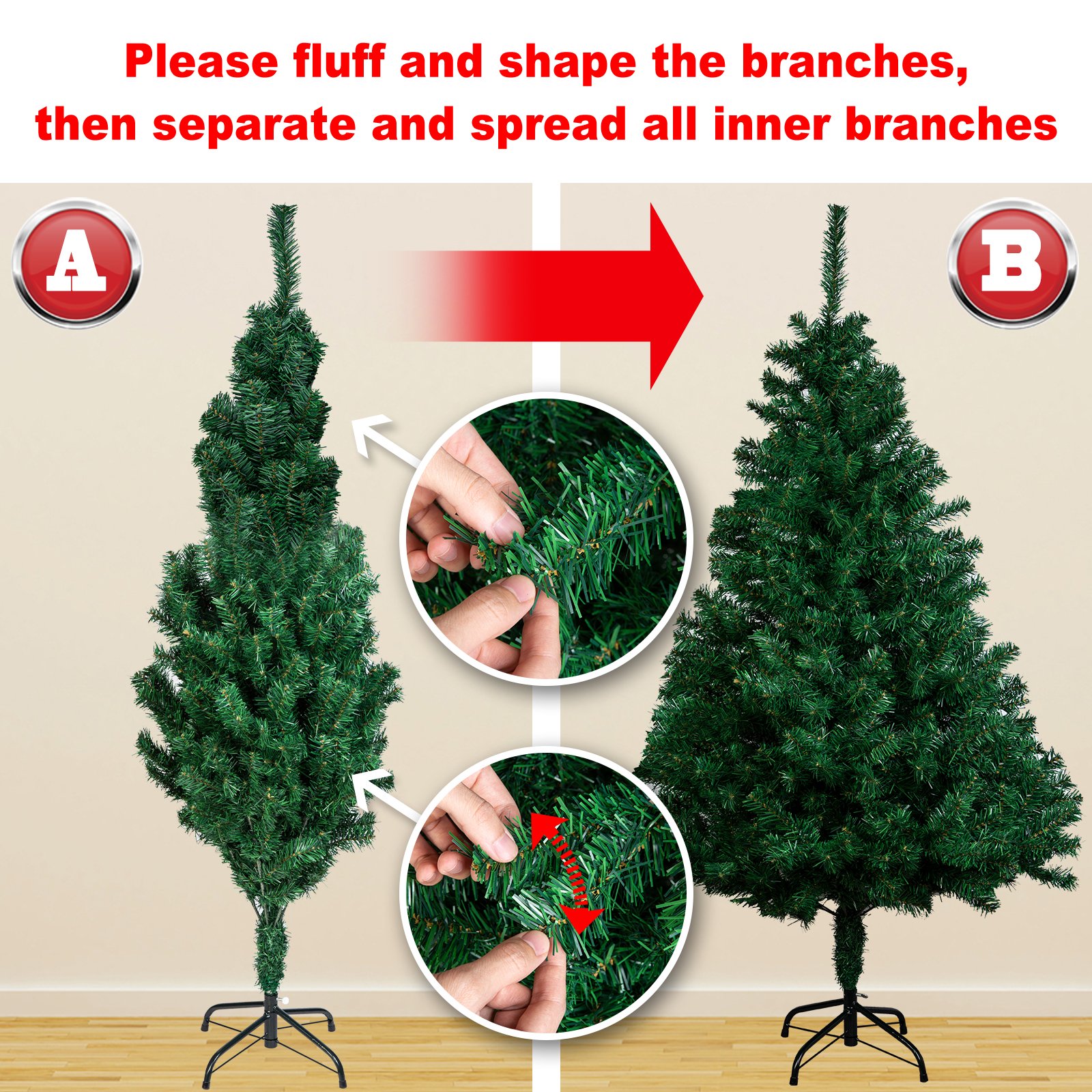 Tree height: 1.2/4ft, 1.5/5ft, 1.8/6ft, 2.1M/7ft