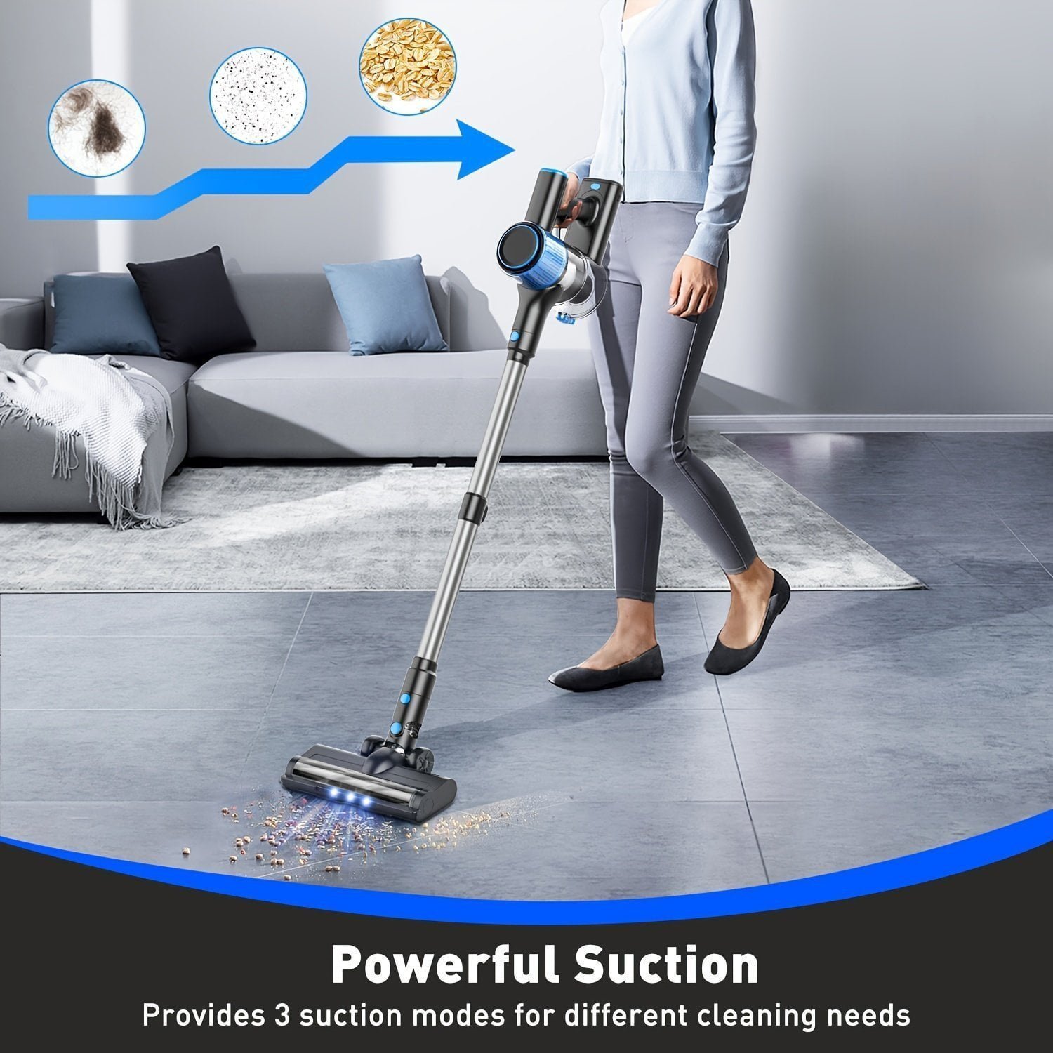 1pc. Cordless Vacuum Cleaner. Powerful Suction Stick Vacuum With LED Display. 3 Suction Modes. Anti-Tangle Lightweight Vacuum Cleaner For Home. Hardwood Floor. Carpets. Pet Hair