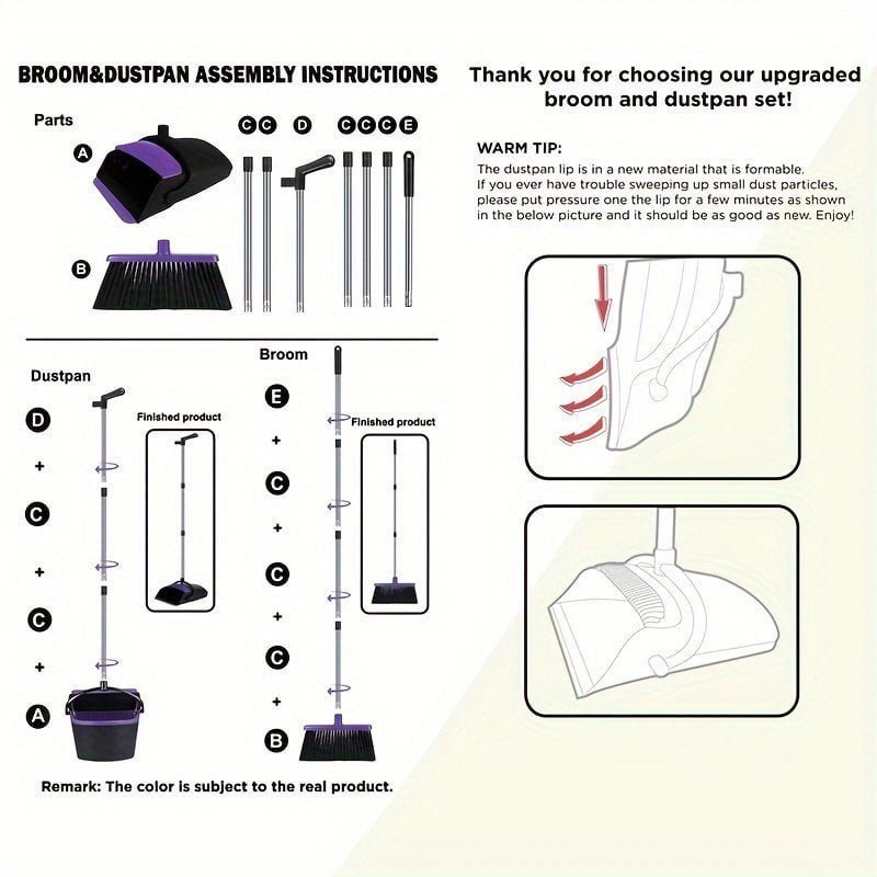 1set. Broom And Dustpan Set. Upright Purple Dustpan Broom. 51
