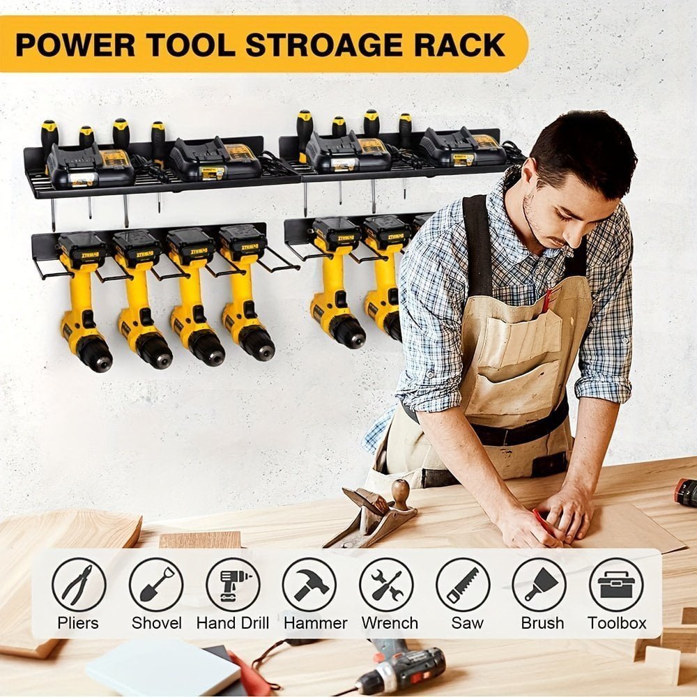 2pcs Power Tool Organizer Wall Mount. Heavy Duty Floating Tool Shelf. Power Tool Holder Wall Mount. Metal Garage Storage Shelves. 4 Drill Holder Hanging Slots
