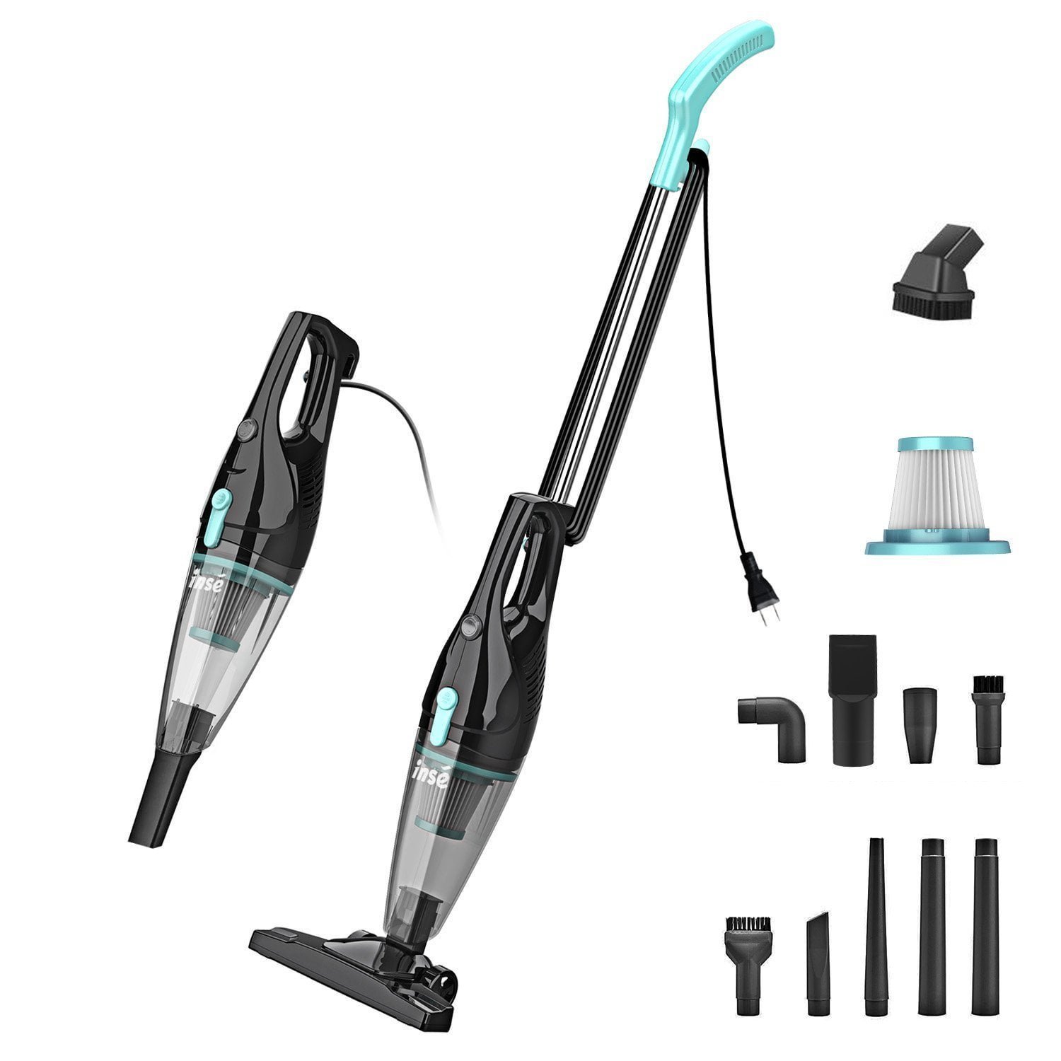 INSE R3s Bagless Stick Vacuum - 4-in-1 Lightweight Corded Vacuum Cleaner for Hardwood Floors. Carpet. Car. and Pet Hair - Ultra Quiet and Handheld-Compatible