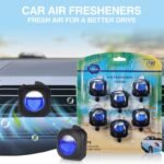 About this item·Removes odors and stays refresh·Clips easily onto car air vent and stays firmly·Up to 30 days of fragrance life per air vent clip·Includes 6 vent clips and provides car fragrance up to 180 days·Also available in 3-pack option – provides up to 90 days of freshness·Fragrance oil can cause damage to surfaces, wipe up spills immediately