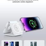 Wireless Charger. Magnetic Foldable 3 in 1 Mag-Safe Charger. Fast Travel Wireless Charging Station for iPhone 15/14/13/12/ Series.for iWatch.for AirPods (Adapter Included)